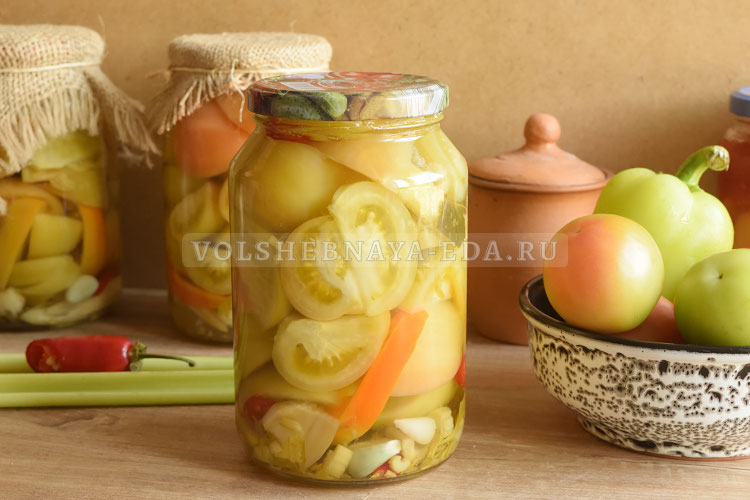 После остывания банки убрать в темное и прохладное место. Получившаяся зимняя закуска из зеленых помидоров с сельдереем будет не только ароматной, но и невероятно вкусной. Прекрасно дополнит основные блюда!