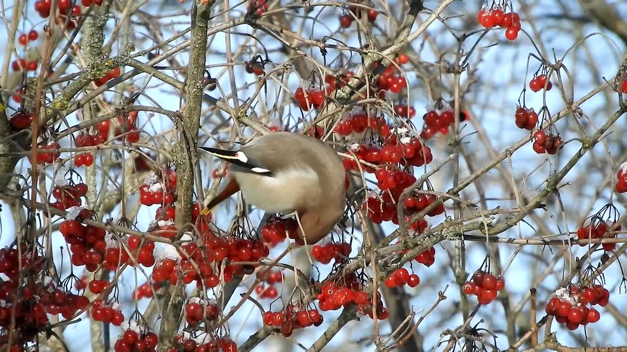 Куст яркой алой калины — пир горой! Северные гости – свиристели – в объективе Валентины Ткачёвой. #ПриродаСоловьиногоКрая