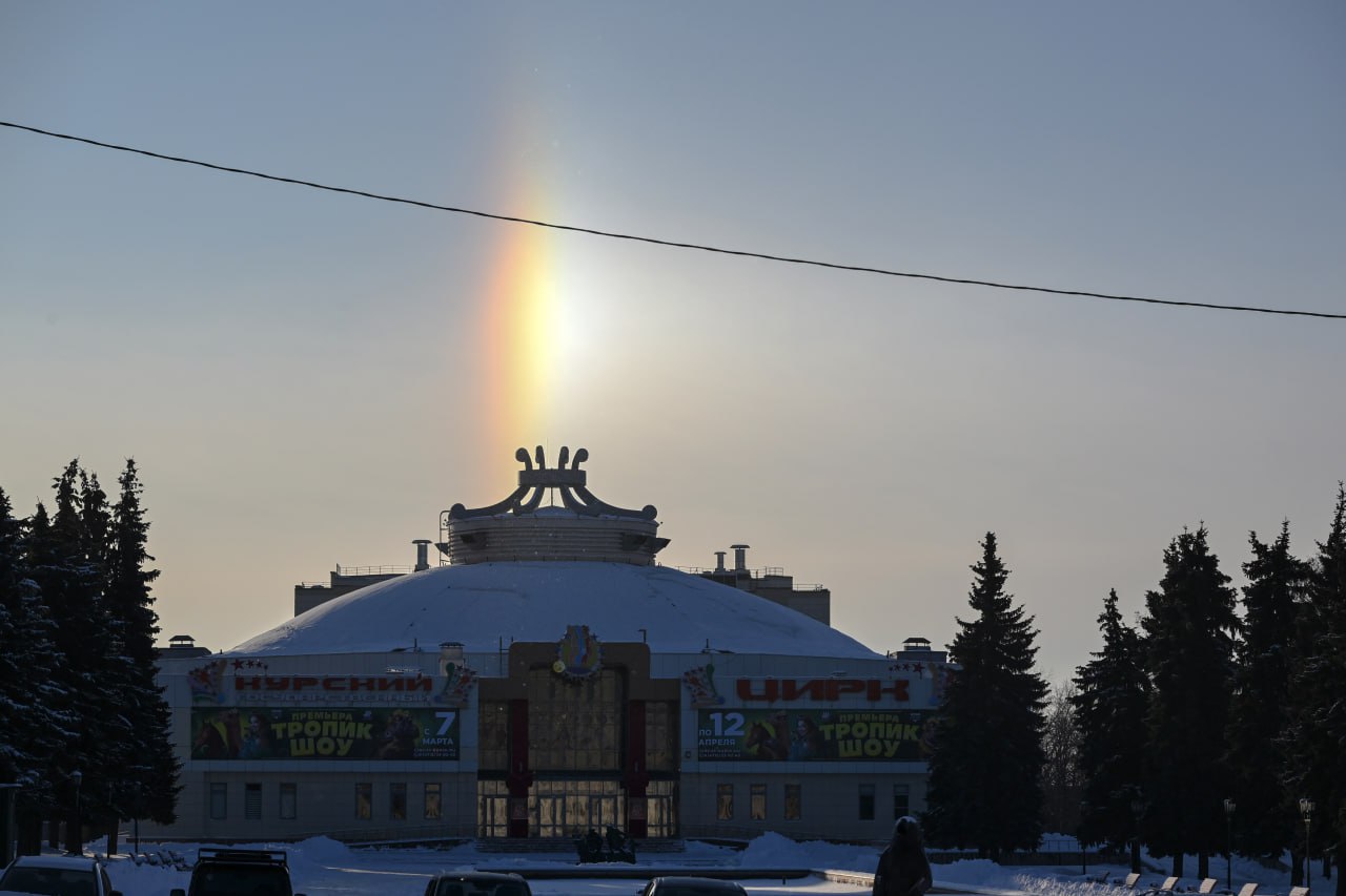Сегодня утром в Курске наблюдалось солнечное гало — редкое зимнее явление.
