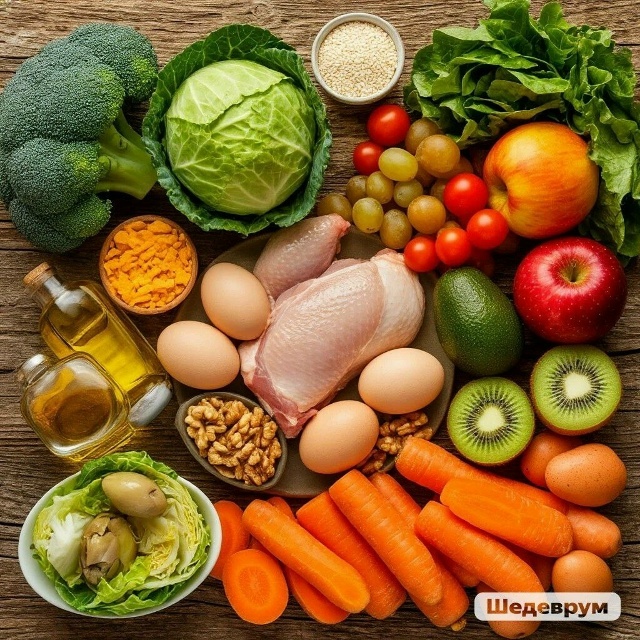 - Овощи и фрукты: свежие, замороженные или консервированные, но с обязательной проверкой состава — без лишнего сахара и соли.