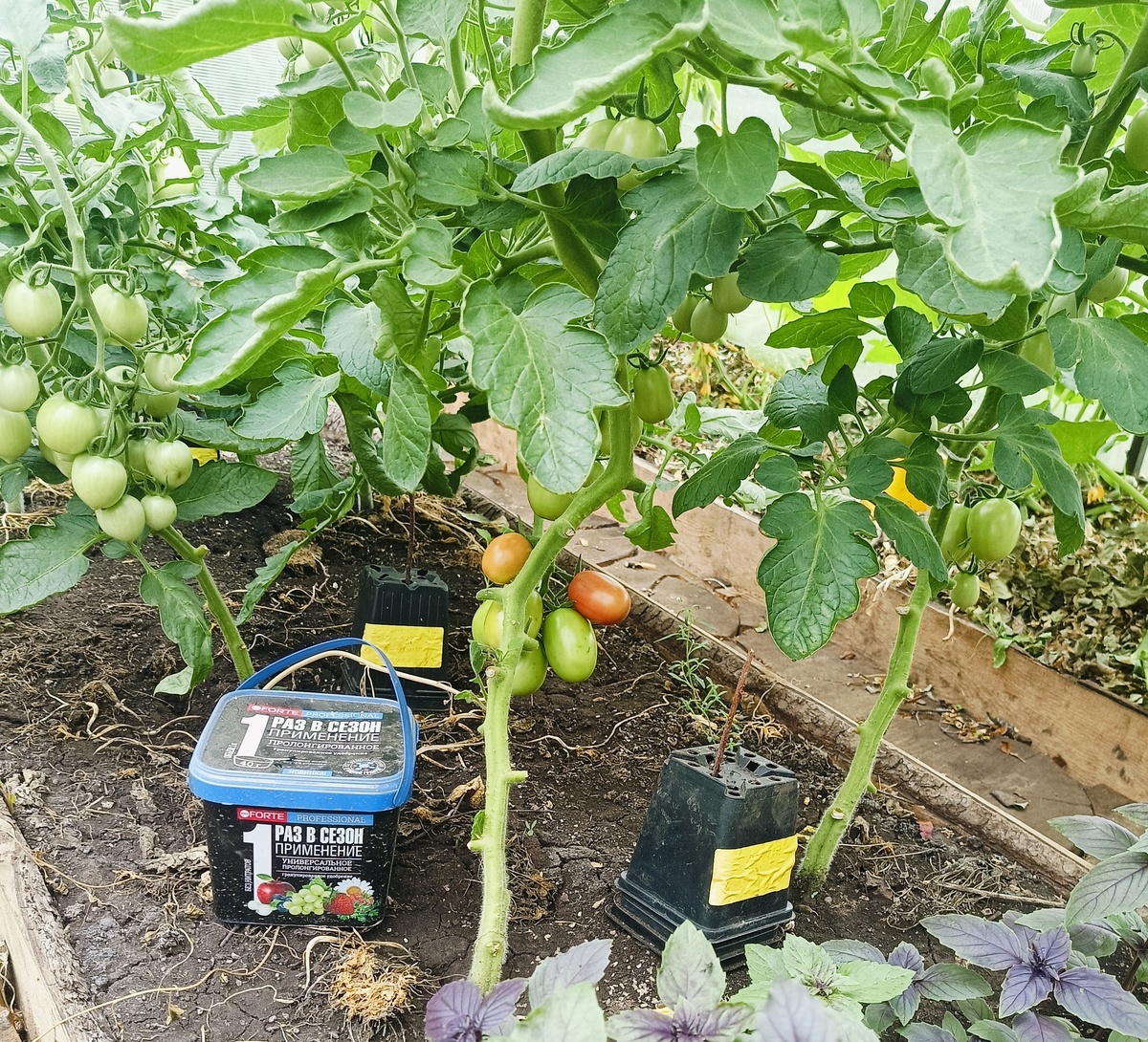К концу июня кустики томатов были готовы к сбору. Среди пробы всех сортов особенно ценились гибриды, которые стоили немалые деньги. Обрадовало отсутствие признаков недостатка в питательных веществах и нарушения агротехники.