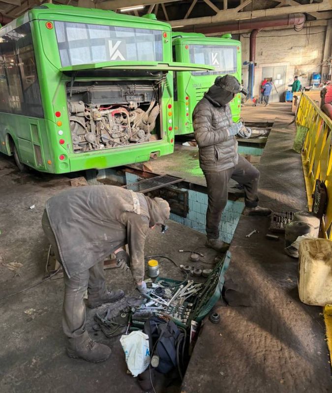 Ремонтная зона площадью 4,5 тысячи квадратных метров сейчас работает с максимальной нагрузкой. Слесари и техники трудятся круглосуточно в две смены по 40-50 человек. Ежедневно через их руки проходит 20-30 машин. Главная задача — оперативно отогреть автобусы и вернуть их на линию, на одну единицу уходит от часа до трех.
