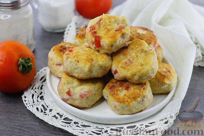Эти котлеты идеально подойдут для обеды или ужина. Куриного фарша, традиционно используемого для котлет, достаточно, чтобы добавить немного мелко нарезанных помидоров и тёртого сыра, что придаст особую сочность.