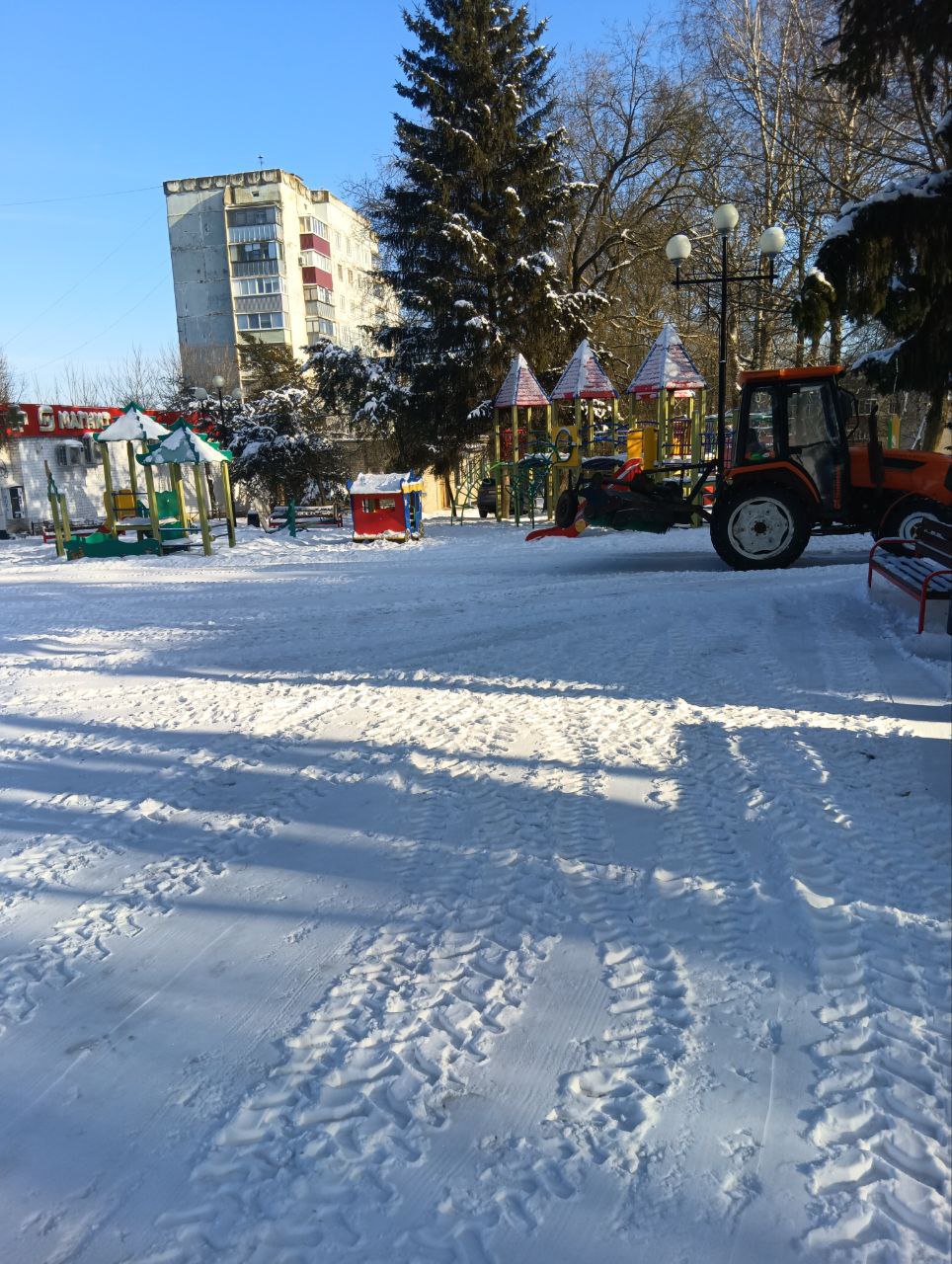 23 человека и четыре машины расчищают снег в общественных пространствах Курска