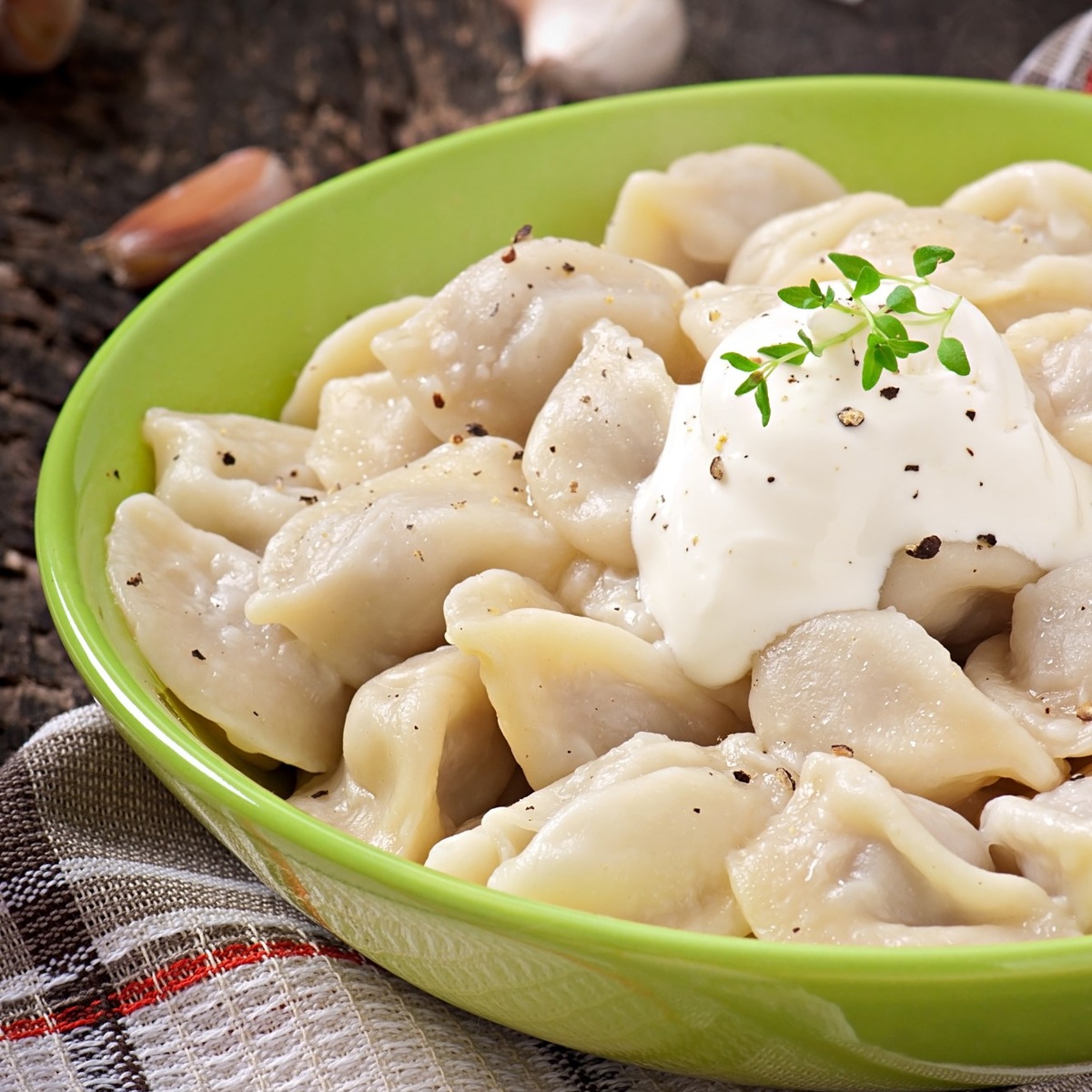 Когда тесто поднимется, раскатываем его в пласт и вырезаем небольшие кружочки. На каждый кружочек аккуратно кладем начинку и тщательно защипываем края, чтобы в процессе варки начинка не вытекла. Варим вареники в подсоленной воде до готовности, примерно 8 минут с момента закипания. Подаем горячими, щедро полив растопленным сливочным маслом и вишневым соком. Не забудьте для полного счастья предложить порцию густой сметаны!
