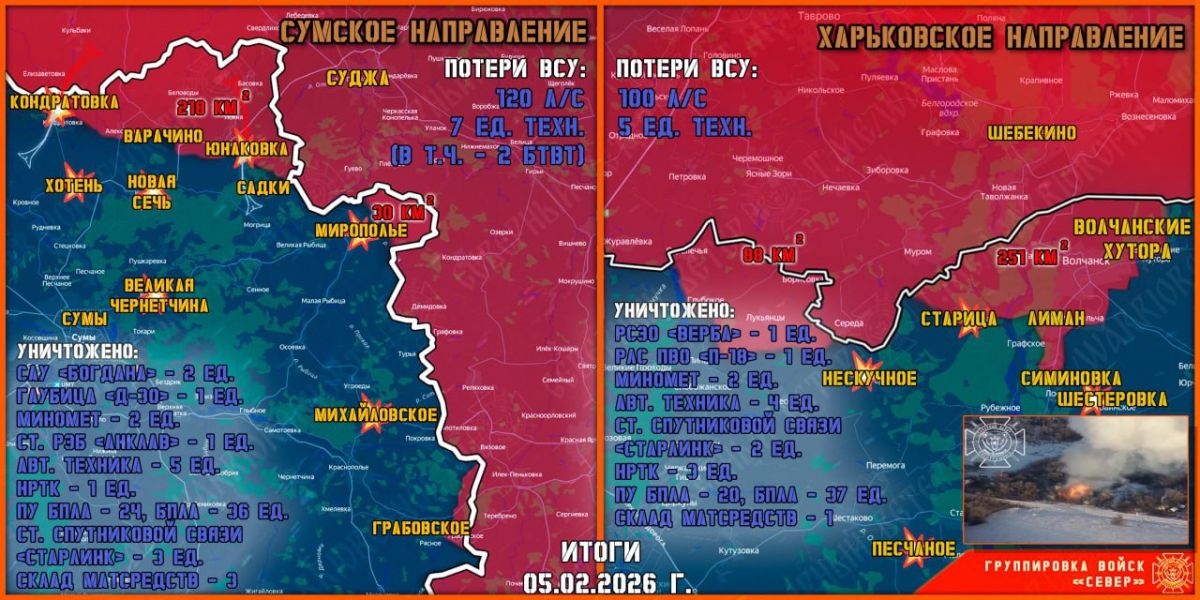 К утру 6 февраля появились новые подробности формирования полосы безопасности в Харьковской и Сумской областях Украины, в том числе на подступах к госгранице с Курской областью России.