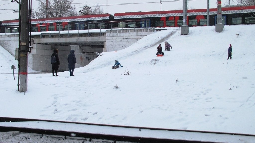 К сожалению, стихийные горки в Щиграх находятся в небезопасном месте. Одним из популярных мест для катания, стала железнодорожная насыпь.