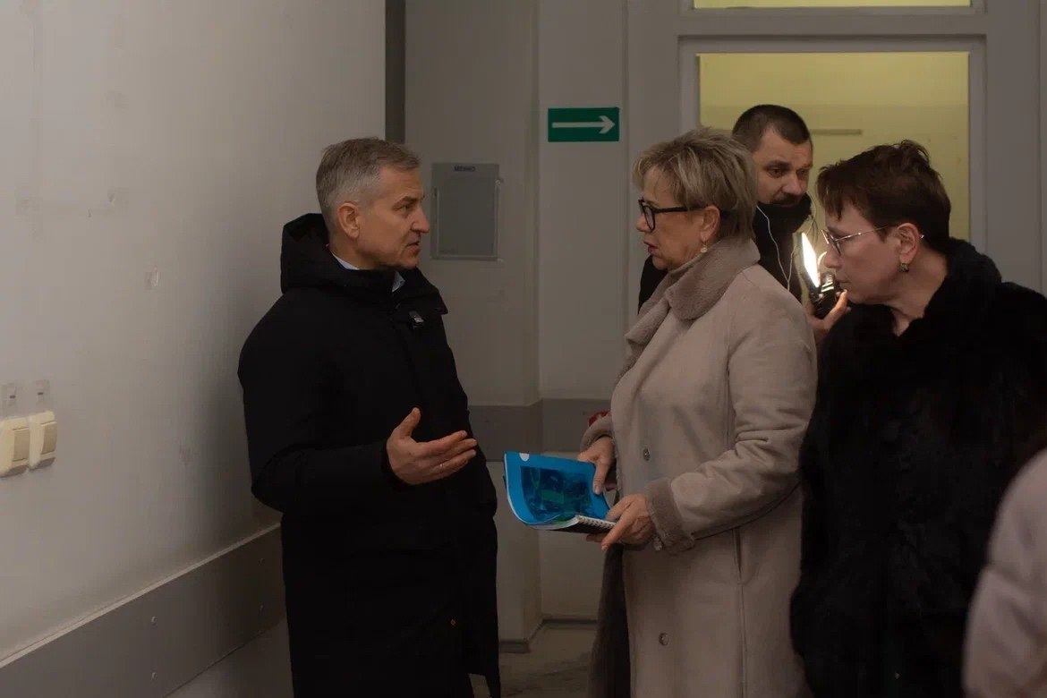 И.о. губернатора Курской области Александр Чепик вместе с министром здравоохранения региона Светланой Ермоловой и главным врачом областного перинатального центра Маргаритой Антюхиной посмотрели, как выполняется капремонт в помещениях гинекологического отделения ОПЦ на улице Ленина в Курске.