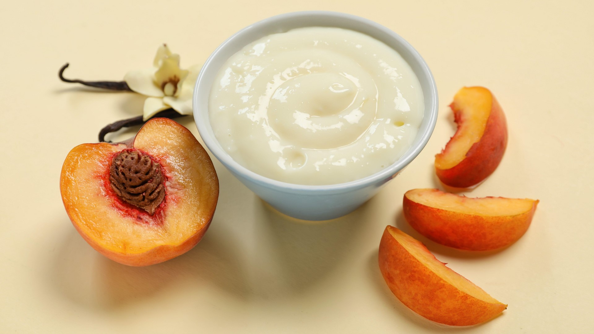 Измельчите персики в блендере до консистенции пюре. Взбейте сливки миксером, аккуратно добавьте к ним сгущенку, а потом — пюре. Еще раз перемешайте десерт, советует портал «Лайфхакер». Готово!
