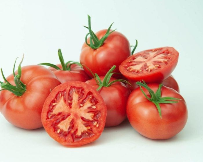 Сами плоды плоскоокруглые, весом около 190 г и с тонкой кожицей, что делает их вкусными, но уязвимыми при транспортировке. В случае резких изменений влажности они могут трескаться, поэтому важно поддерживать стабильный уровень влаги в почве. Плоды идеально подходят для салатов, соков и свежих блюд.