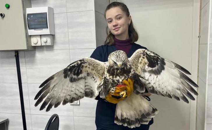 Птицу обнаружили у обочины дороги и доставили в ветеринарную клинику