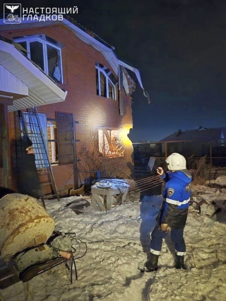 По предварительным данным, осколочное ранение в результате прилёта снаряда по частному дому получил мужчина. Его отправили в больницу. Дом поврежден (на фото).