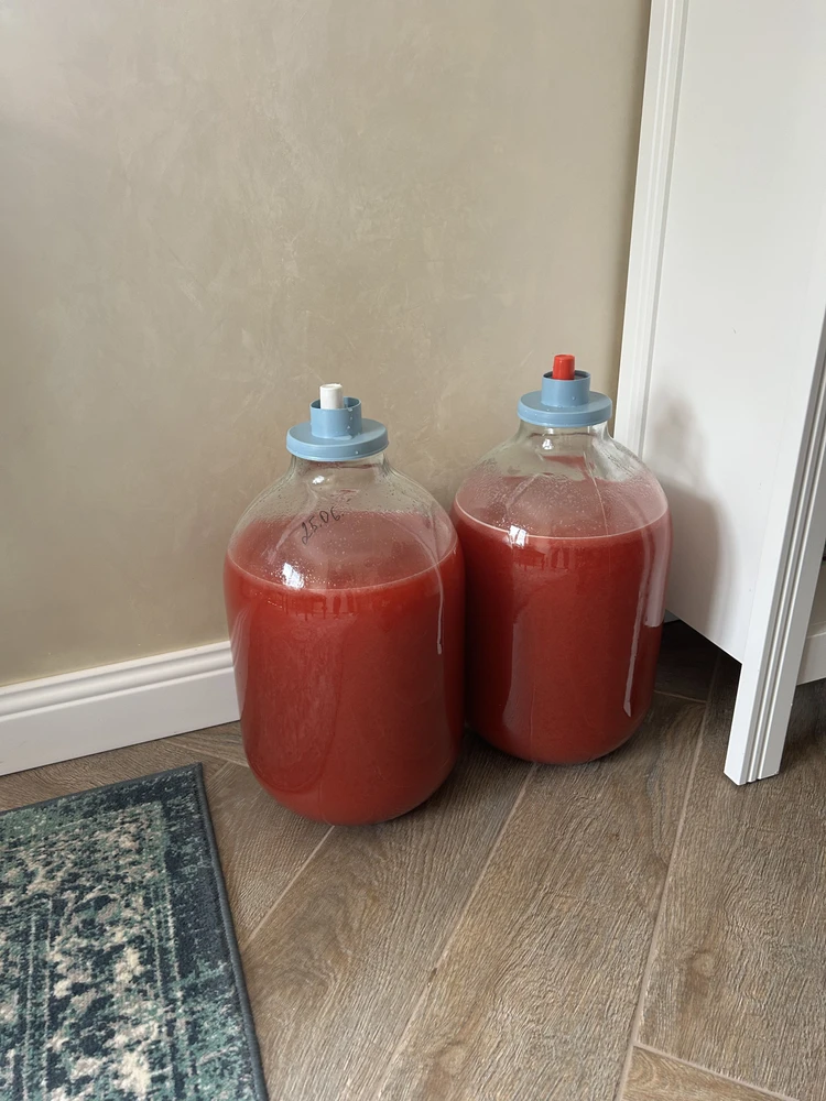 На четвертый день вы заметите кисловатый запах и легкое шипение — это знаки того, что ферментация началась. Теперь нужно отцеживать жидкость через марлю в другую чистую емкость, отжимая сок из остатков ягод. Закройте новую банку специальной крышкой с гидрозатвором.