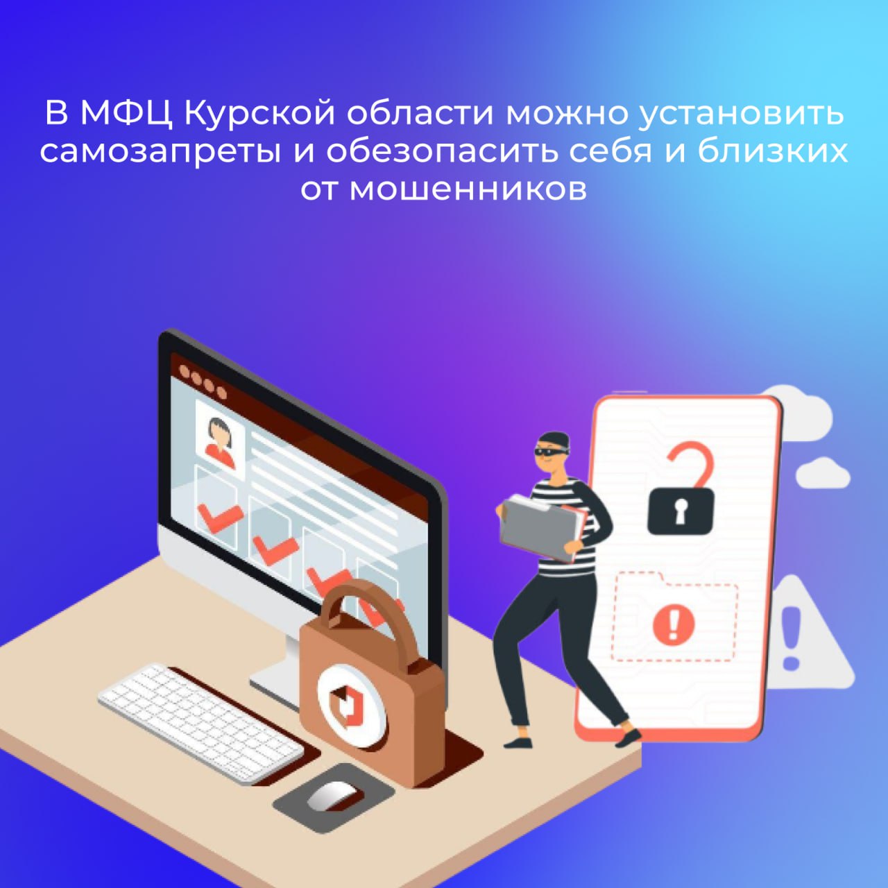 В МФЦ Курской области можно оформить ряд услуг, которые помогут обезопасить себя от мошеннических действий. Цифровые сервисы и услуги развиваются при поддержке нацпроекта «Экономика данных».