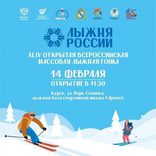 Министерство физической культуры и спорта Курской области информирует о том, что 14 февраля 2026 года в г.Курске (ул. Парк Солянка, лыжная база) пройдет XLIV Всероссийская массовая лыжная гонка «Лыжня России – 2026».