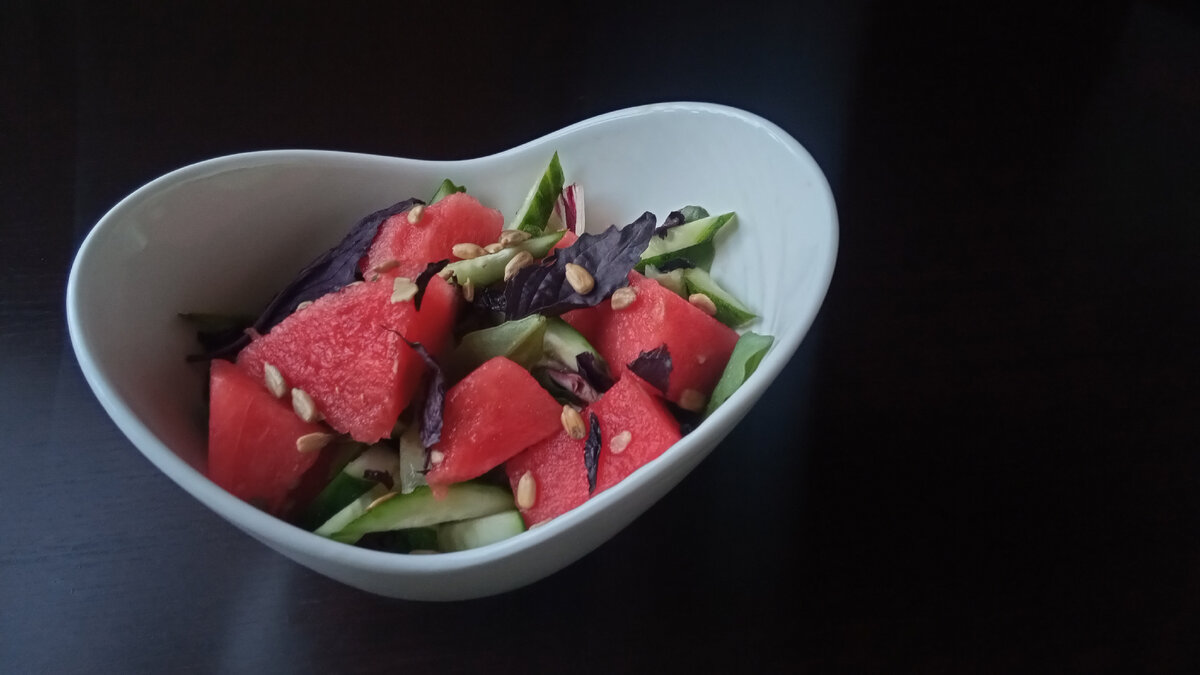 Салат на основе арбуза и огурцов — это не только вкусно, но и невероятно быстро. Четверть часа потребуется даже начинающему кулинару для его приготовления. Этот салат отлично сочетает в себе сладость спелого арбуза и свежесть огурца, а добавление горечи рукколы и сливочности сметаны подчеркивает все эти потрясающие вкусовые ноты.