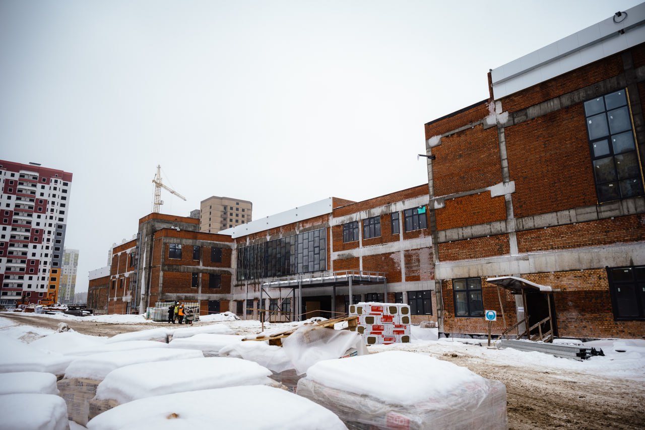 На площадке ежедневно работают 197 человек, готовность объекта составляет почти 50%. Строители завершают монтаж витражей и окон, ведут прокладку инженерных сетей, подключили отопление. Со следующей недели начнутся отделочные работы.