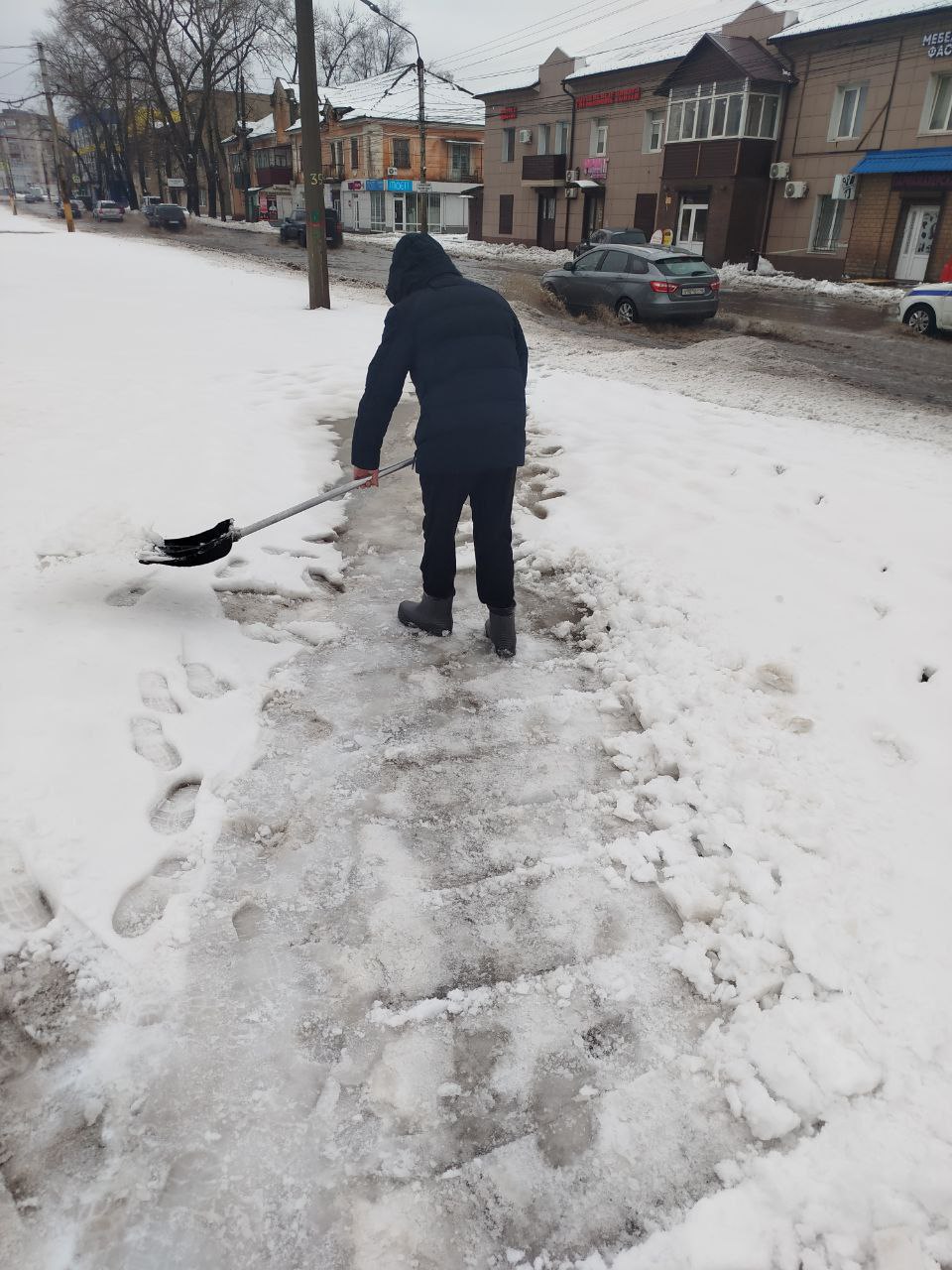 Сотрудники спортивной школы «Картинг» помогли в расчистке пешеходных переходов и остановок на улице Литовской.