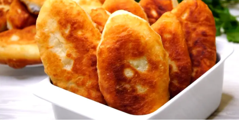 Затем тесто вымешивается и делится на небольшие части. Из каждой части формируются лепешки, в которые помещается начинка, после чего края защипываются. При жарке пирожков на сковороде с растительным маслом до золотистого цвета, они получаются румяными и аппетитными.