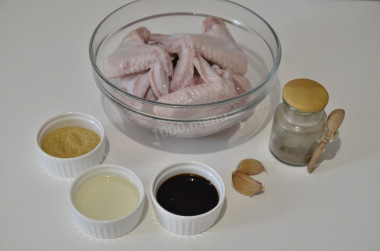 Смешайте соевый соус, растительное масло и сахар. Чеснок пропустите через пресс и добавьте в смесь. Чуть-чуть посолите для баланса вкуса. Погрузите крылышки в маринад и оставьте на 3 часа в холодильнике — или, если у вас есть время, на ночь!