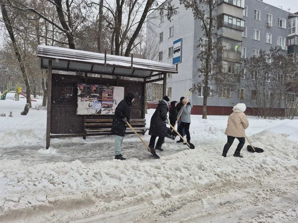 Управление экономики и прогнозирования Администрации города Курска провели работы по очистке остановки "Школа 49".