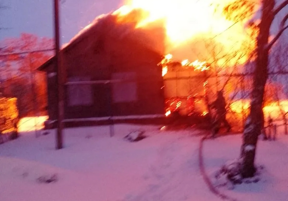 В Курской области вечером 19 февраля сгорел деревянный дом, обмазанный глиной