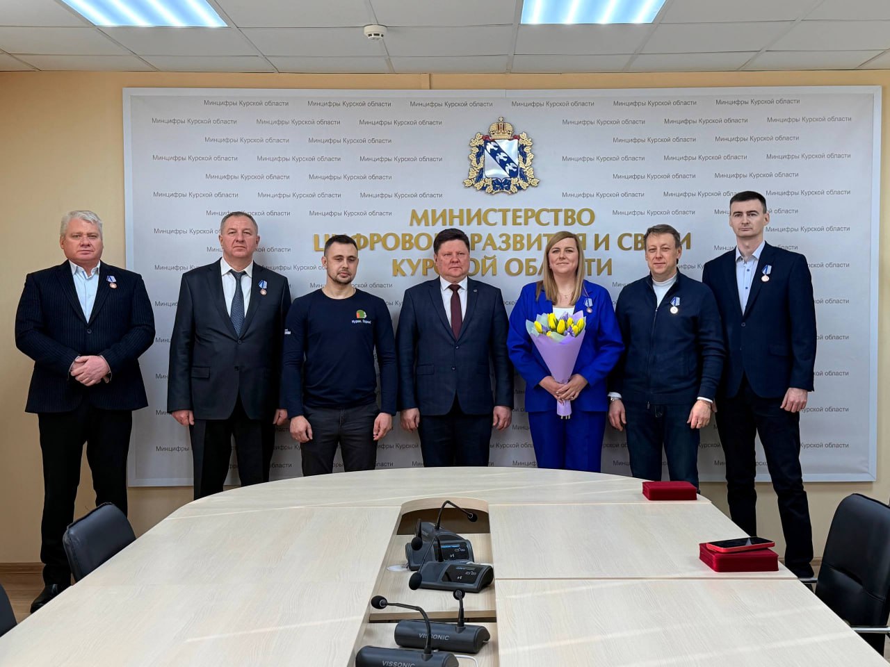 Сегодня министр цифрового развития и связи Курской области провел церемонию награждения сотрудников отрасли связи, активно участвующих в том числе в проектах по улучшению инфраструктуры связи и расширению покрытия мобильными сетями на территории региона.