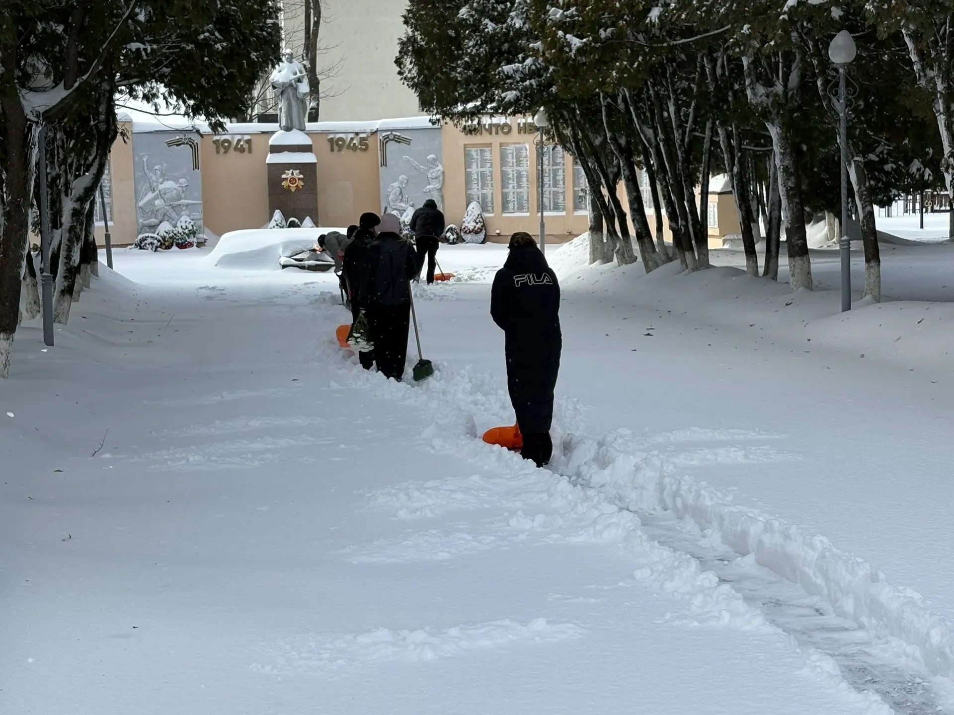 В преддверии Дня защитника отечества Волонтёры отряда « Данко» совместно с юнармейским отрядом ФСОШ #2 им. Александра Глебова расчистили снег в Сквере павших воинов