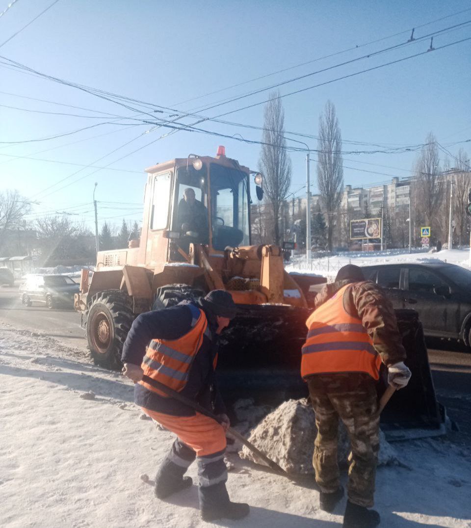 В ночь на 21 февраля в Курске работали 86 единиц снегоуборочной техники. Специалисты расчищали проезжие части, обрабатывали их песко-соляной смесью и расширяли полосы движения для безопасного проезда.