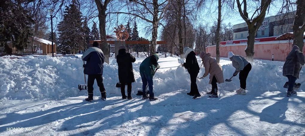 К борьбе со снегом на улице Карла Маркса и Красной площади активно подключились коллективы школ №1 и №3. Коллективами были успешно расчищены пешеходные дорожки для горожан.