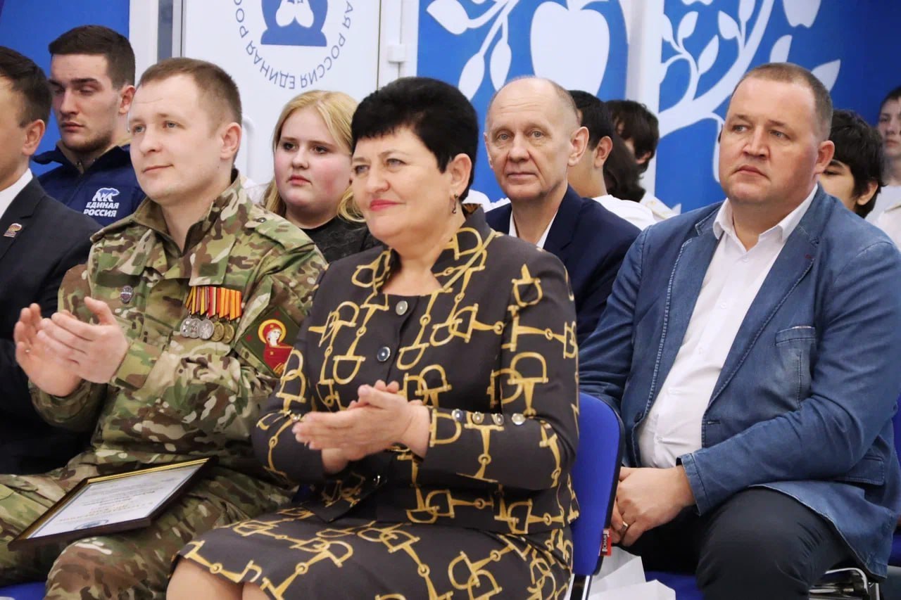 Депутат вручила благодарственное письмо участнику СВО Андрею Милютину. Вкратце напомнив о его подвиге.