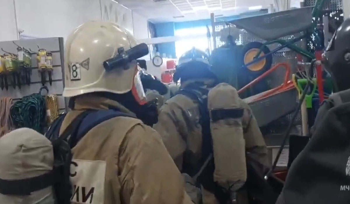 По сценарию пламя вспыхнуло в складском помещении и охватило 150 кв. метров. Ситуация угрожала посетителям здания.