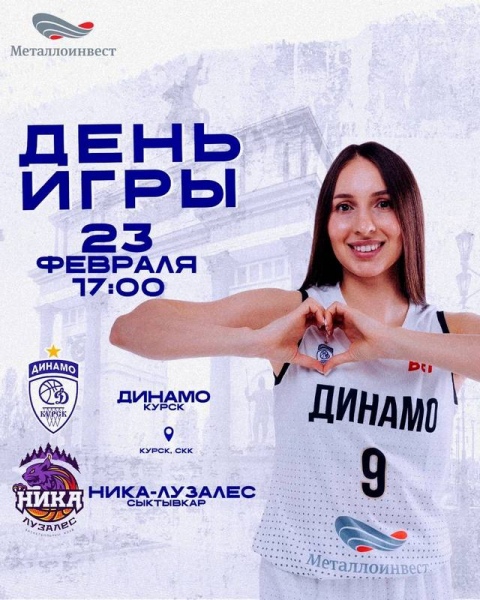 Сегодня, 23 февраля, баскетболистки «Динамо» (Курск) проводят домашний матч второго этапа регулярного чемпионата женской премьер-лиги. Начало игры с «Никой-Лузалес» из Сыктывкара в СКК на улице Энгельса в 17:00.