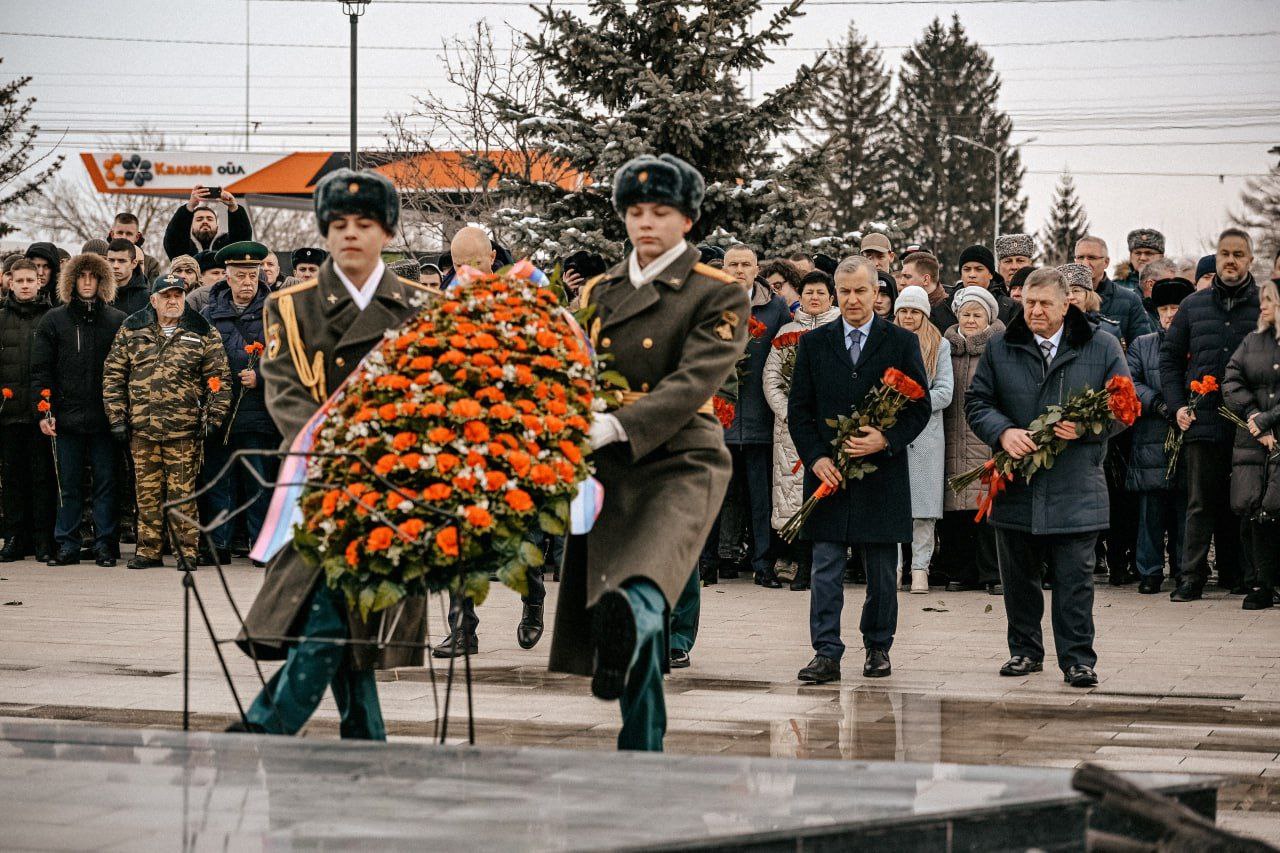 К Вечному огню цветы и венки возложили и. о. губернатора области Александр Чепик, и. о. председателя Курской областной Думы Александр Кичигин, депутаты, представители власти, молодёжных и ветеранских организаций, волонтёры, куряне.