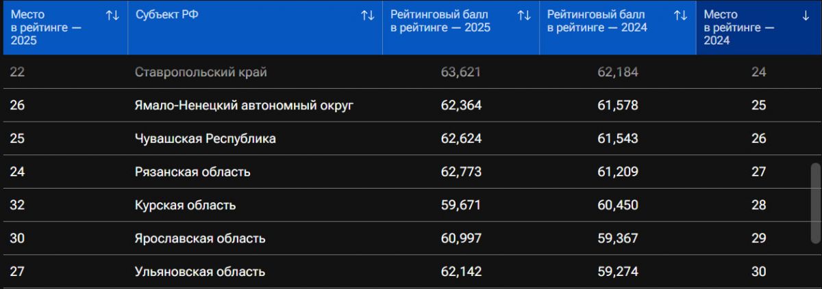 Источниками информации выступили данные Росстата, Минфина, Федерального казначейства, ЦБ РФ и МВД РФ. При расчете использовались последние доступные показатели за 2023–2025 годы. Итоговое место каждого региона определялось на основе интегрального рейтингового балла.