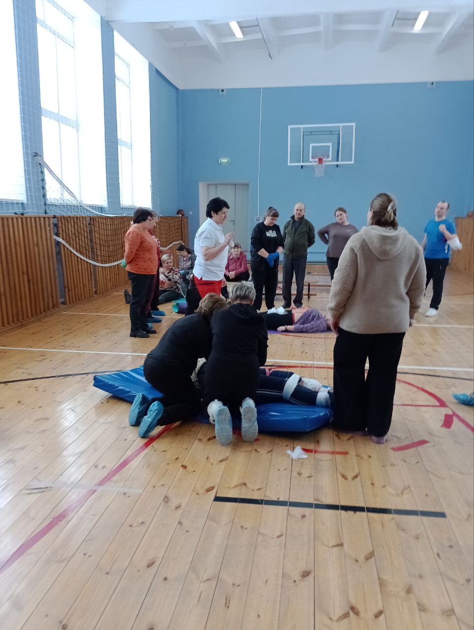 На практических занятиях участники освоили методы сердечно-легочной реанимации, остановки кровотечений подручными средствами и наложения повязок при травмах. Также были рассмотрены распространенные ошибки, которые могут навредить пострадавшему.