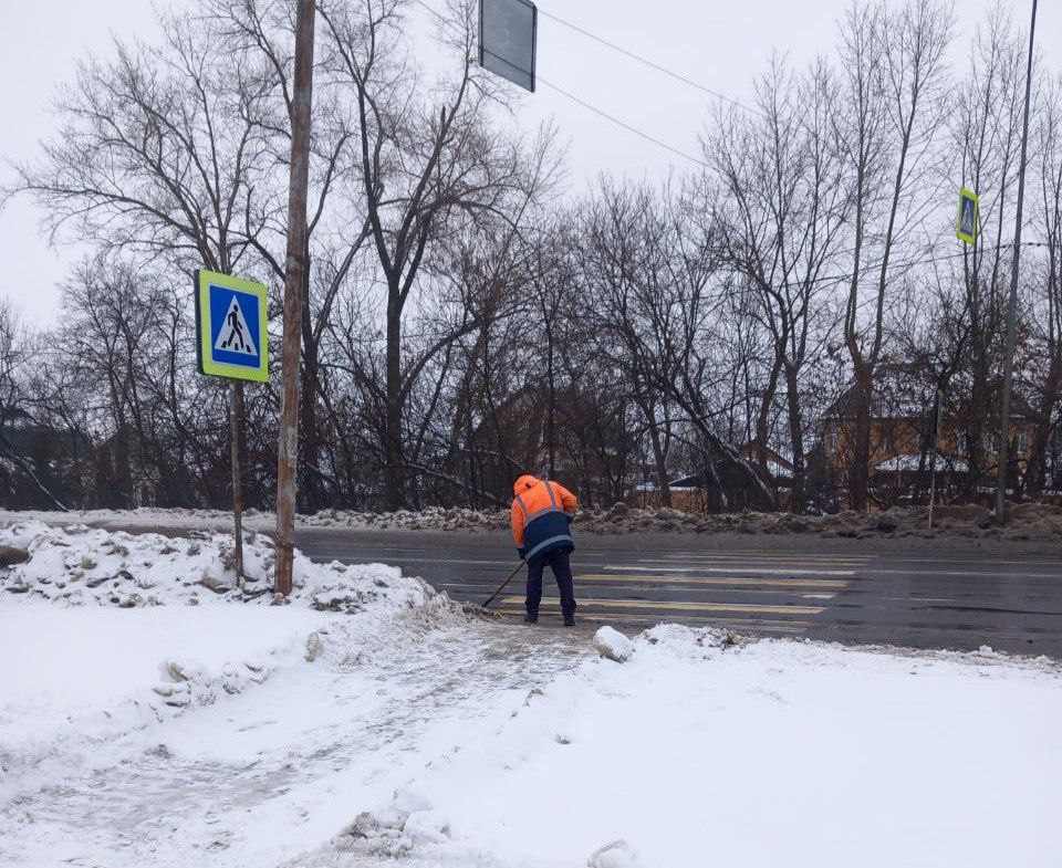 Дорожники расчищают от снега решетки, чтобы вода могла стекать в водоотвод. Сегодня в Курске работают вручную 67 человек. Специалисты также чистят автобусные остановки, пешеходные переходы и убирают мусор из урн.