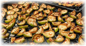 Это старинный и энергонезависимый метод. Разложите дольки на решетках или сетках, накрытых марлей, и оставьте на солнце. Не забывайте следить за погодой, чтобы не допустить намокания яблок.