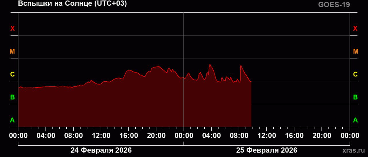 Уровень вспышек приблизился к высокому М-классу. Если выброс выйдет из-за горизонта, сила излучения станет выше.