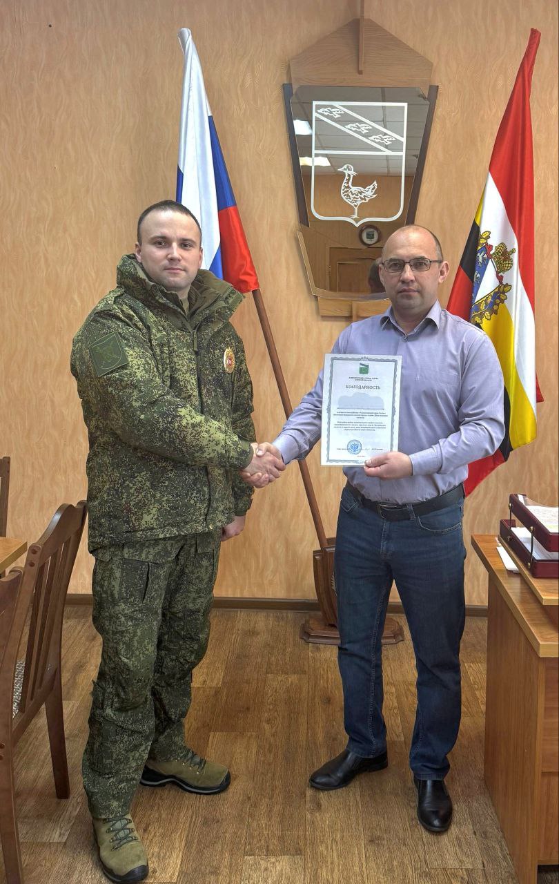 Сегодня встретился с начальником отделения военной полиции Льговского района и лично вручил ему благодарственное письмо.