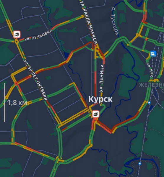 Как информирует сообщество «Курский транспорт», одна из аварий случилась на пересечении улиц 50 лет Октября и Пучковки — затруднено движение лв направлении Северо-Западного жилого района.