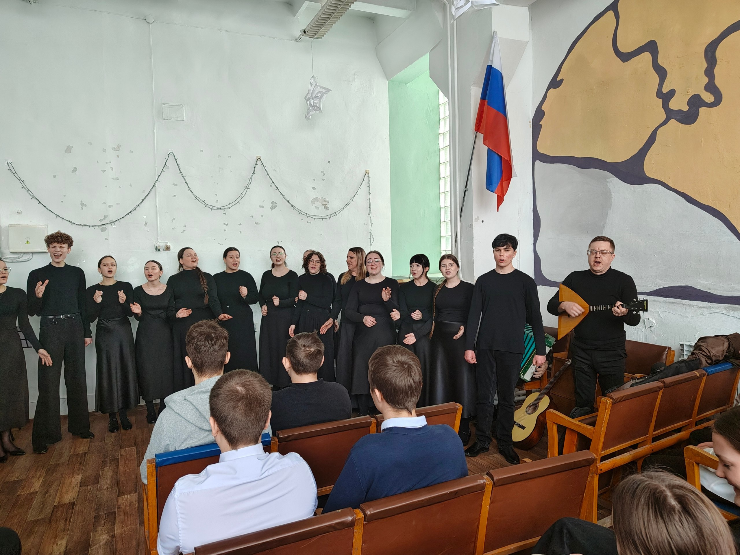 25 февраля перед обучающимися МКОУ «Суджанская СОШ №2» выступил студенческий народный хор Суджанского колледжа искусств им. Н.В. Плевицкой под руководством Егоровой Светланы Викторовны с концертной программой «В памяти навсегда...», посвященной трагическим событиям в городе Суджа.