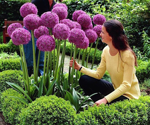 - Порей может достигать высоты 1,5 метра, создавая эффектные сиреневые шары диаметром 15-20 см.