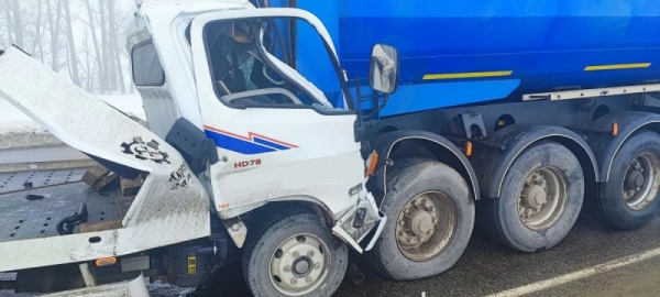 По предварительным данным, столкнулись попутные грузовики: «Хендай» под управлением 33-летнего водителя и ДАФ, за рулем которого находился 50-летний шофер.