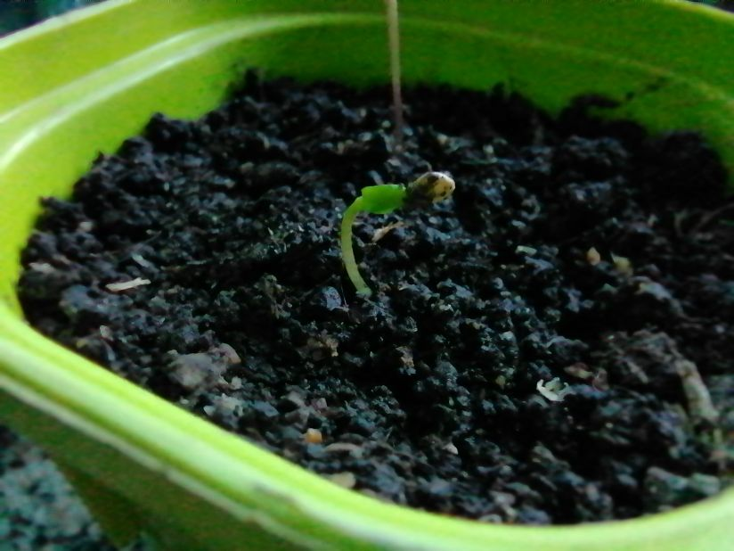 - Всход перца Рамиро, который не проявил признаков роста на протяжении трёх дней, оставаясь в оболочке.