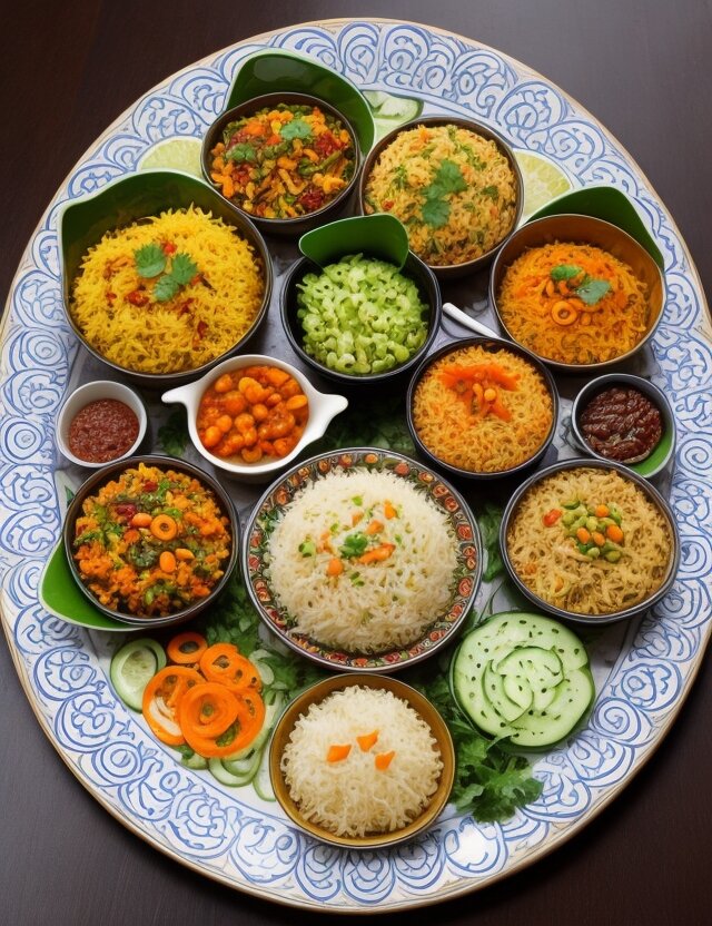 Начнем с популярного блюда — брийани. Этот ароматный рисовый плов, накрытый слоем нежных овощей и хрустящих орехов, считается не просто едой, а настоящим ритуалом.