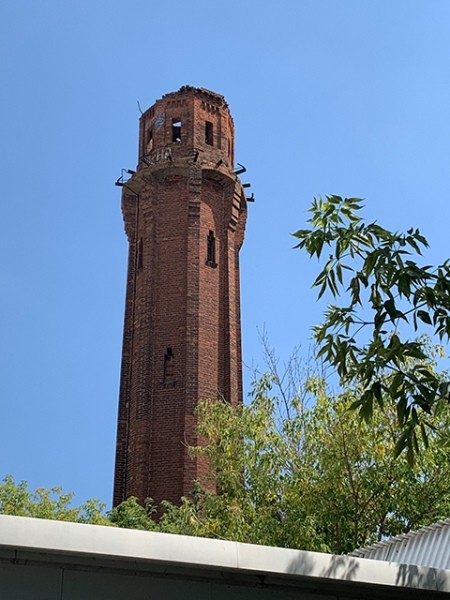 Водонапорная башня, которая в том числе служила пожарной каланчой, была построена в 1874 году. По углам была увенчана высокими острыми шпилями, из которого поднимался граненый кирпичный ствол с металлической смотровой площадкой. Высота башни — 25,5 метров. После того, как башню перестали использовать по назначению, жители соседних домов сделали из подземной части погреба.