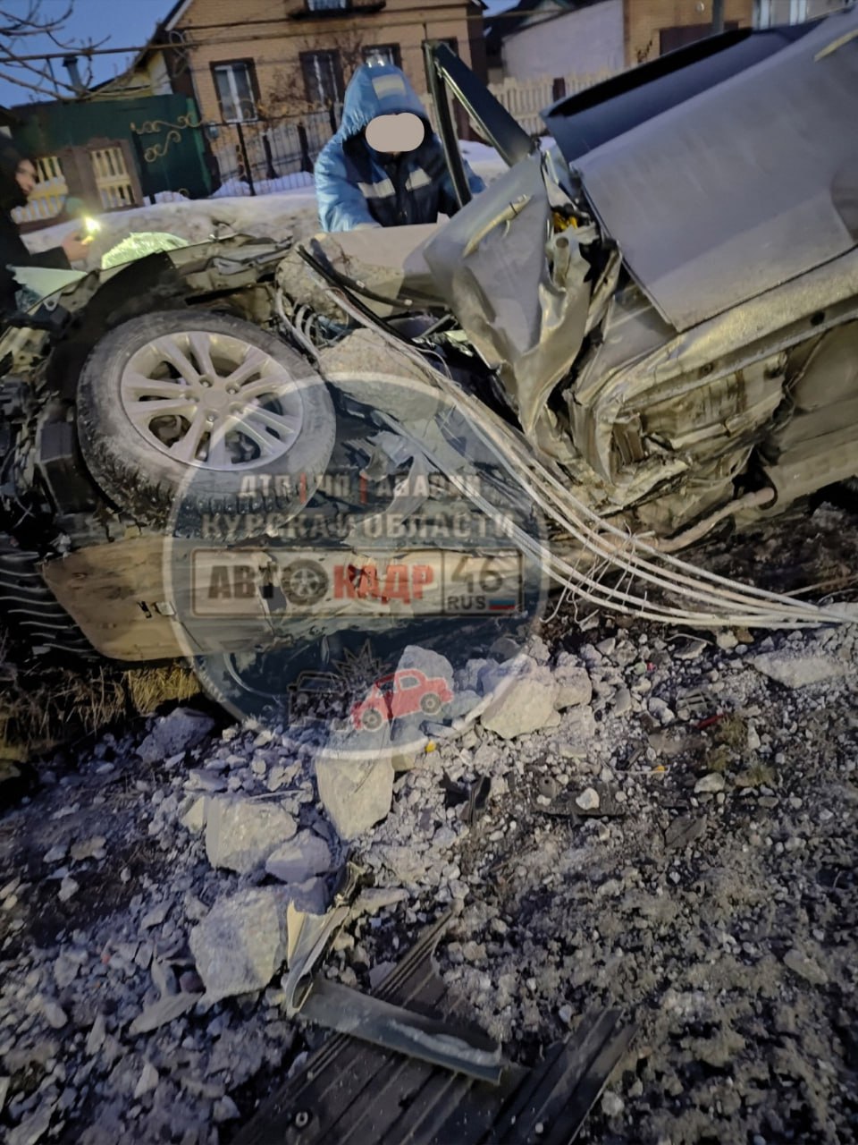 Утром в Курском районе водитель иномарки протаранил опору ЛЭП
