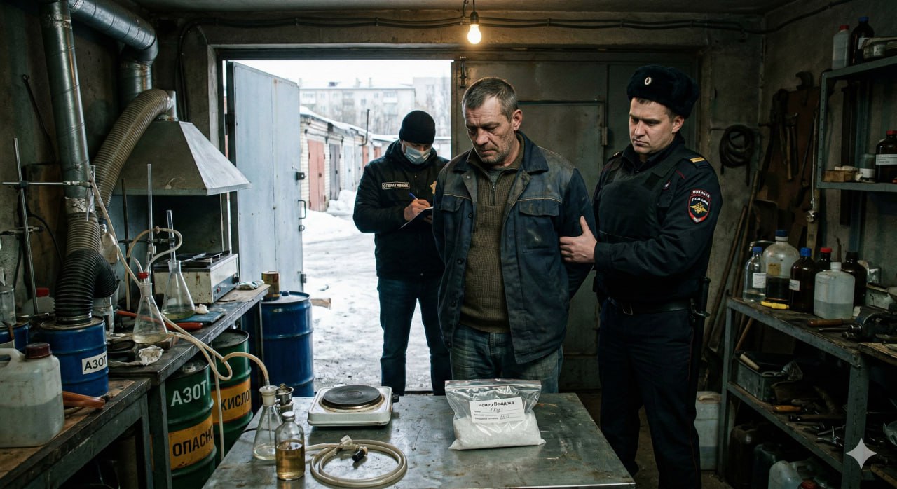 По версии следствия, осенью 2024 года мужчина через мессенджер договорился с подельниками о производстве запрещенных веществ для продажи в регионе. К зиме 2025 года он превратил собственные гаражи в полноценный цех: установил отопление, вентиляцию и специальное оборудование. Химикаты для «работы» курянин лично привез из Орла на своей машине.