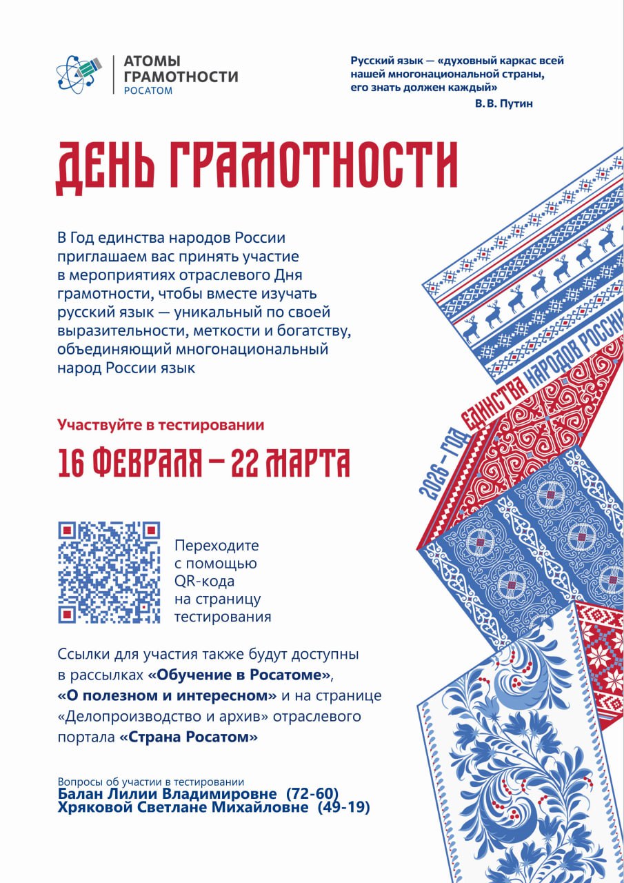 Приглашаем принять активное участие в отраслевом тестировании по русскому языку в рамках Дня грамотности 2026